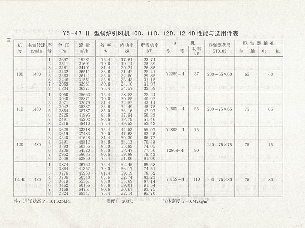 注: Na4C、5C、6.3C進氣狀態(tài)P=101. 325kPa,溫度t-200,氣體密度p =0. 745kg/'N8C、10C、12. 5C進氣狀態(tài)P= 101.325kPa,溫度(二140C,氣體密度p =085kg/m'.