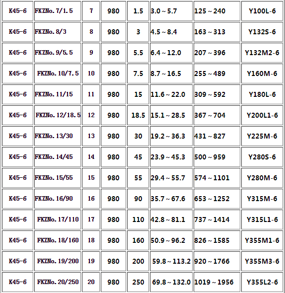 K45礦用軸流風(fēng)機(jī)參數(shù)
