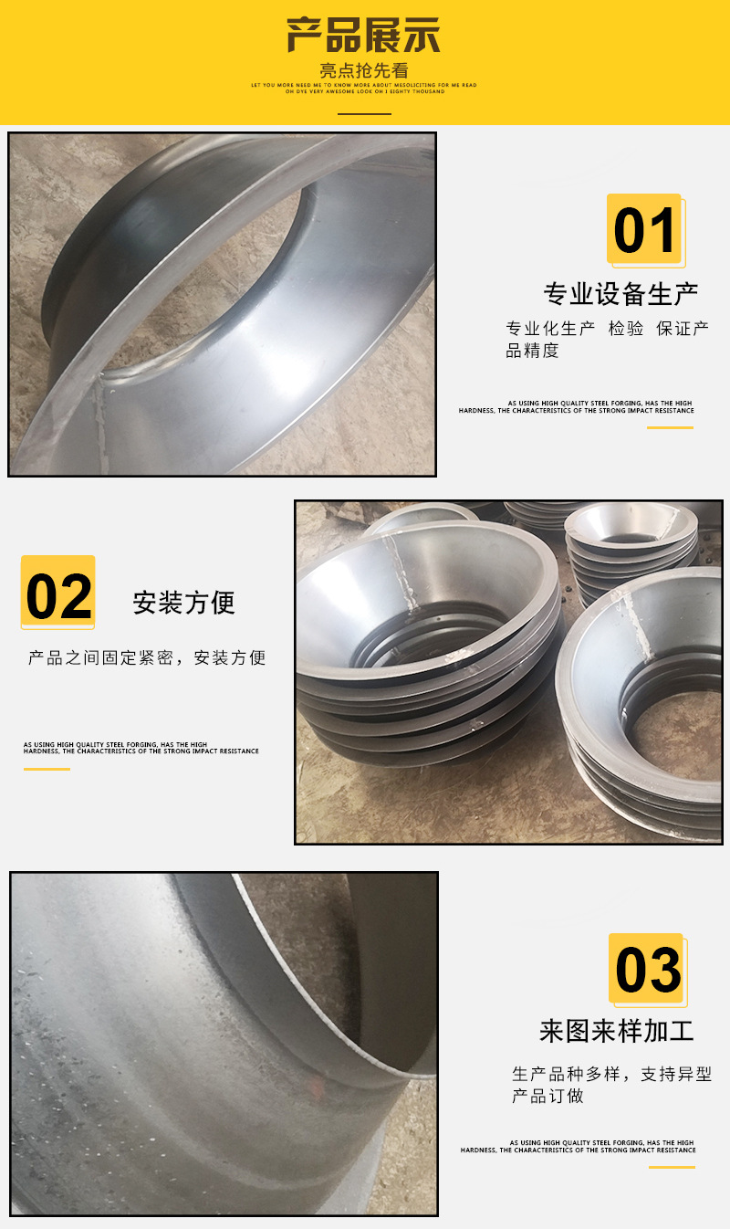 可做不銹鋼、玻璃鋼、塑料、碳鋼多種材質的進風口,所有風機型號進風口皆可定制!