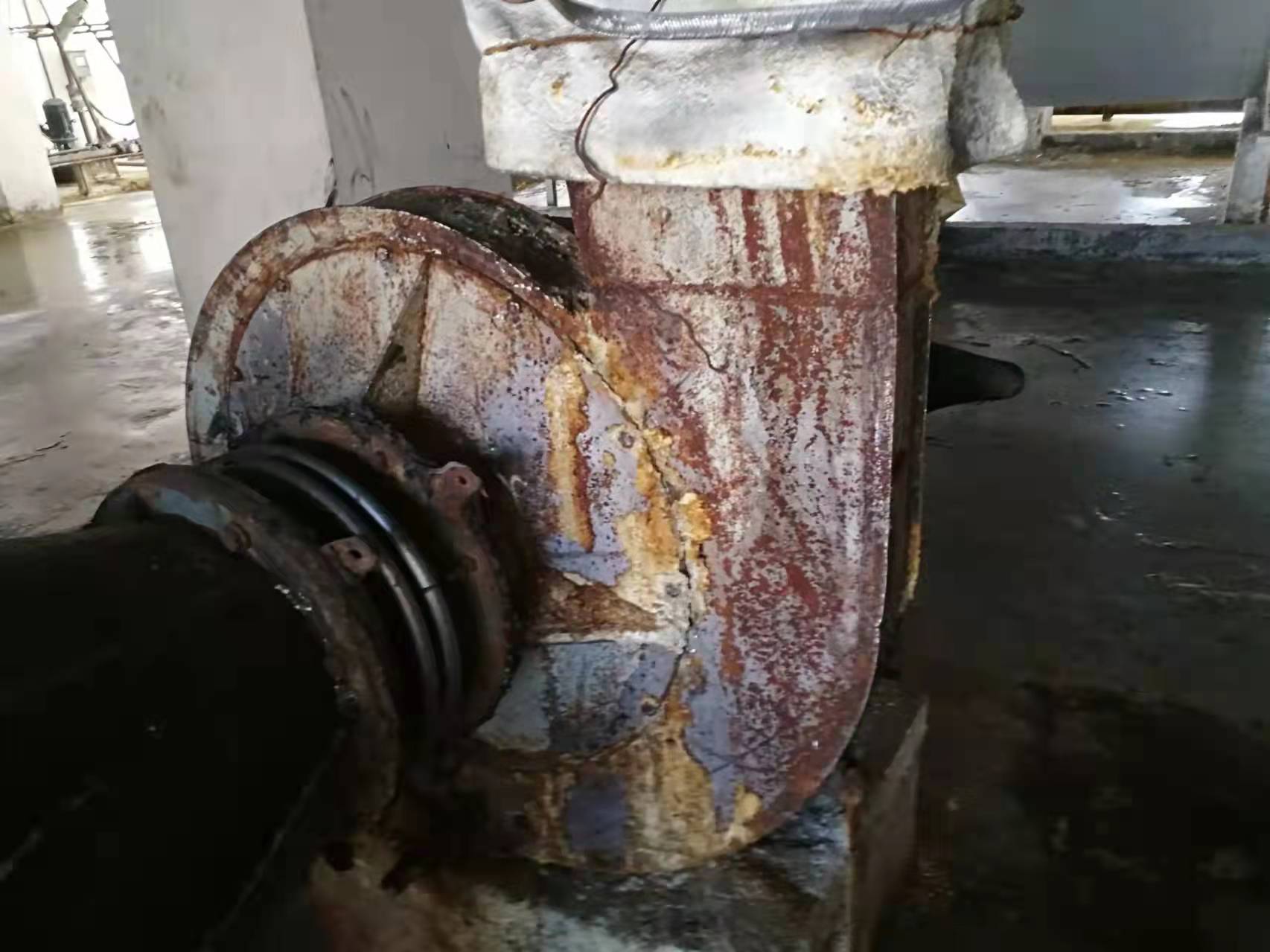 2021年1月3日,北京某環(huán)保公司張總給我們打來電話,說其在日照鋼鐵公司的一個廢氣處理項目中的四臺尾氣風機運行僅一個月就腐蝕損壞,不能再繼續(xù)使用,急需更換。這兩臺尾氣風機是用于酸液反應釜廢氣收集,工藝是由風機負壓收集排入噴淋塔等環(huán)保設備,其強腐蝕介質在處理前就直接經(jīng)過風機,其實設計前已經(jīng)預料到此種工況,并采用了316L材質的風機,但沒想到腐蝕性竟如此強大,造成風機在短時間內(nèi)被嚴重腐蝕。工藝布置已完成不能更改,只能通過更換風機解決此問題。